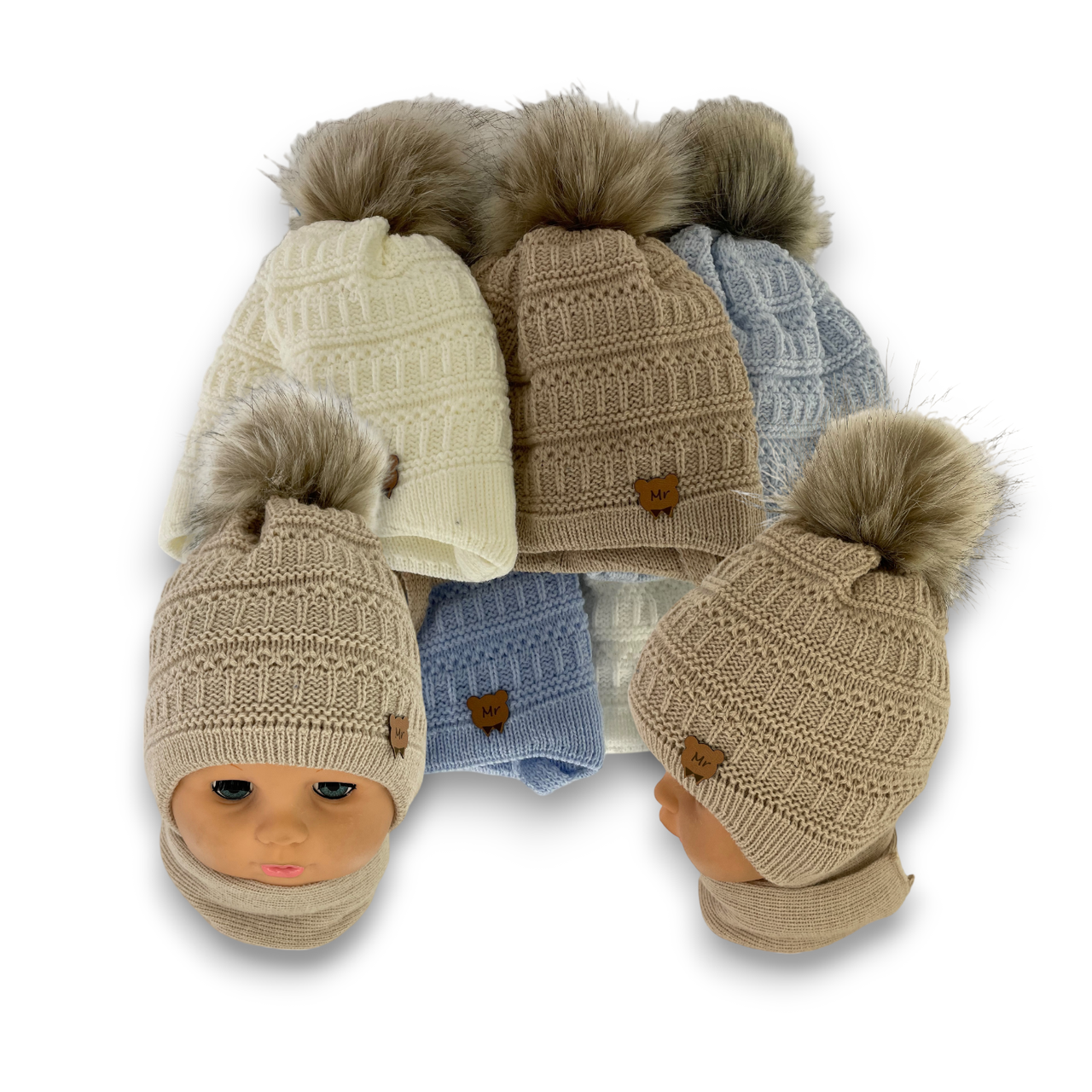 ОПТ Дитяча шапочка на зав'язках і шарф для хлопчика, р. 38-40 (5 шт./набір)