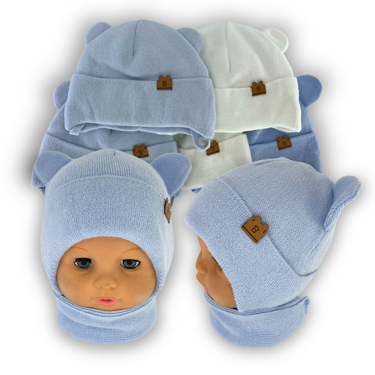 ОПТ Дитяча шапочка на зав'язках і шарф для хлопчика, р. 40-42 (5 шт./набір)