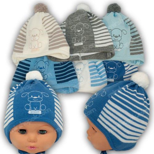 Шапка в'язана із зав'язками. Кольори можуть змінюватися залежно від постачання партії від виробника.